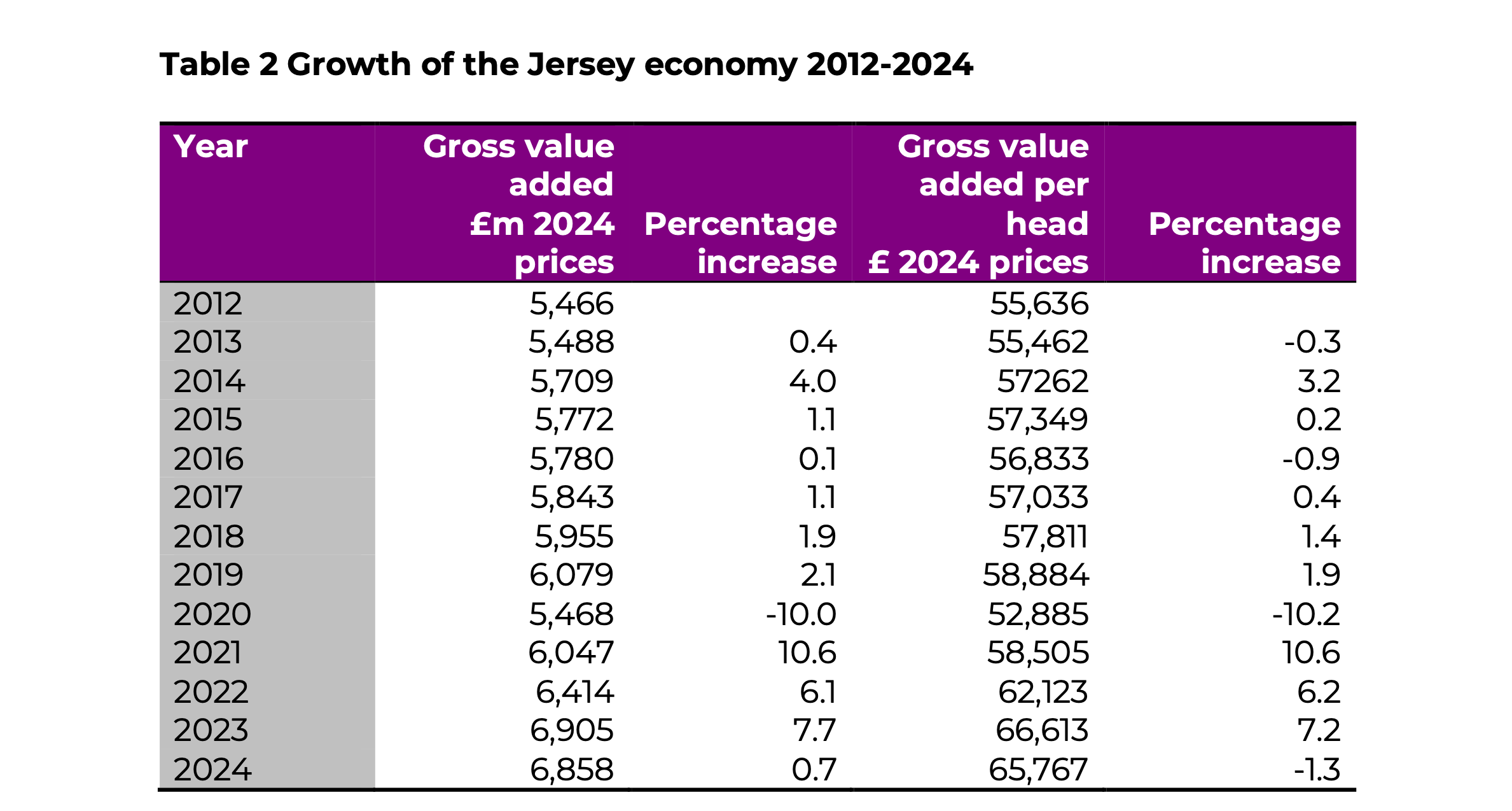 - Jersey’s economy decreased by 0.7% in 2024. The FPP forecast is for growth of 0.4% in 2025 and 0.9% in 2026.