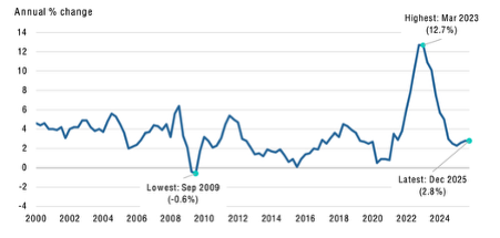 - Retail prices increased by 2.8% in the year to December 2025. The FPP’s May 2025 forecast is that the underlying rate of inflation will be 3.7% in 2025 and 2026.