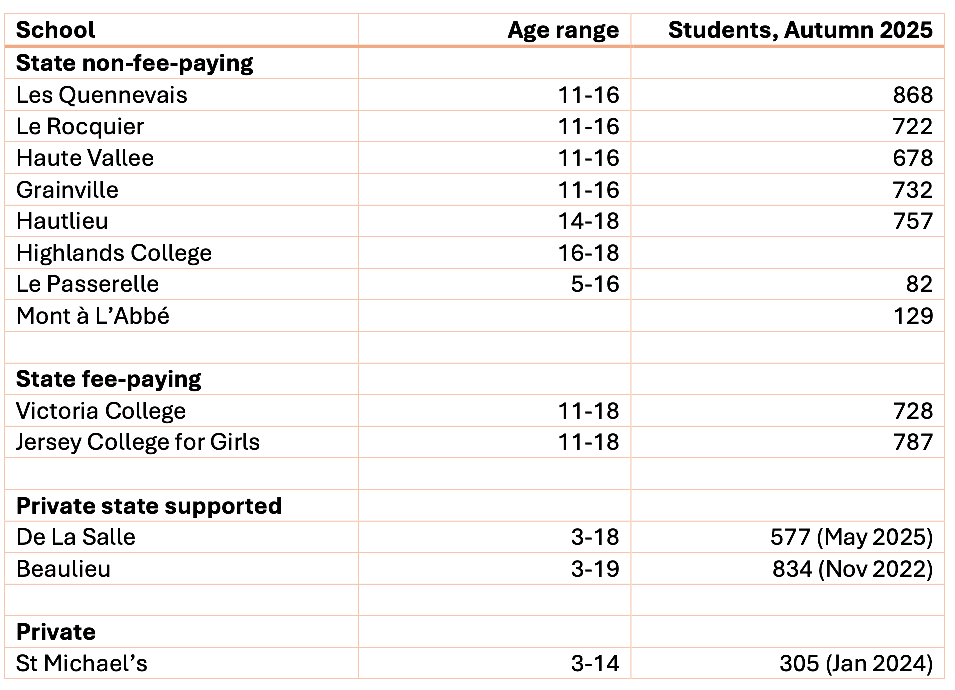 - Hautlieu, a non-fee-paying, selective school, which covers the 14-18 age group.
