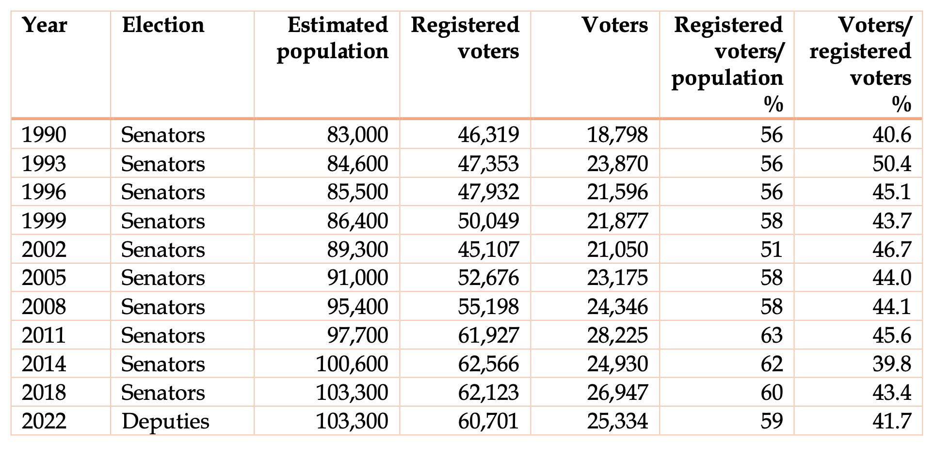 Table 1 Turnout in Jersey elections, 1990-2022