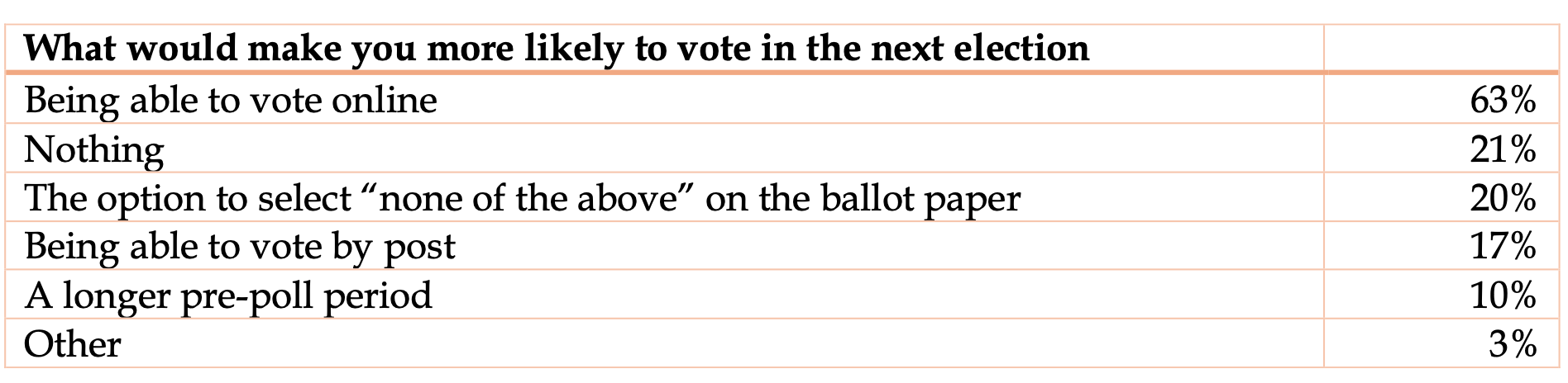 - Increasing postal voting – principally by providing an option for postal voting in voter registration forms.
