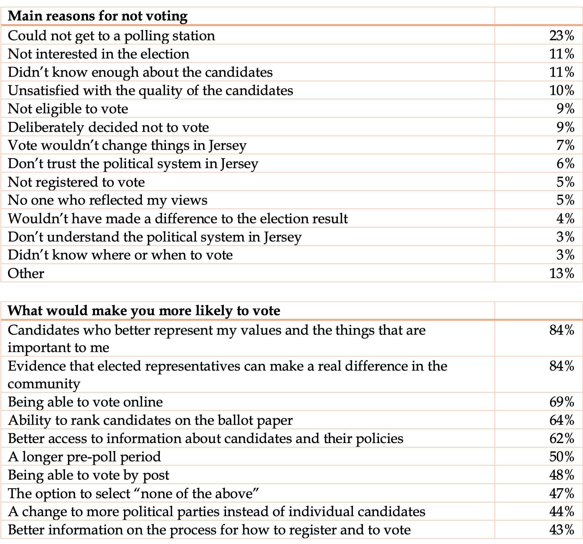 - The Jersey Opinions and Lifestyle Survey Report 2022, which asked about voting in the 2022 election, the fieldwork being done shortly after the election.